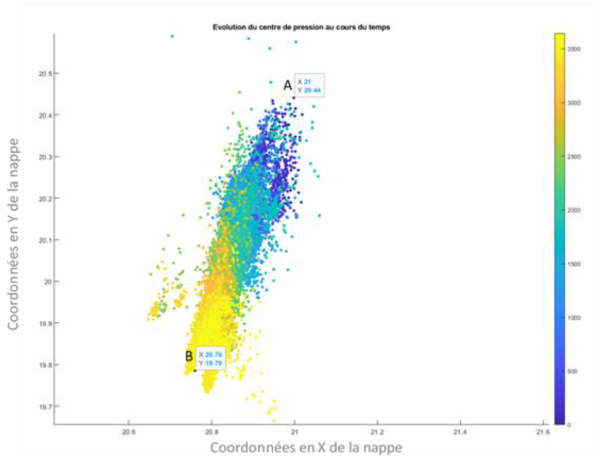 • Posture : déplacement du centre de pression limité à 1 cm, indiquant une stabilité du corps