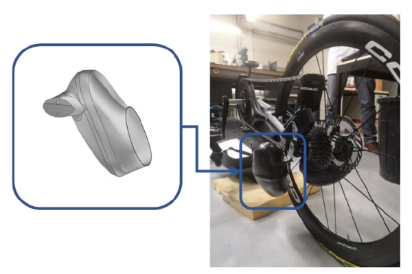 Une coque de maintien du pied a été conçue via CAO, imprimée en 3D pour tests ergonomiques et aérodynamiques, puis fabriquée en carbone. Elle allie légèreté, sécurité et conformité aux normes UCI. Joseph l’utilise en compétition.